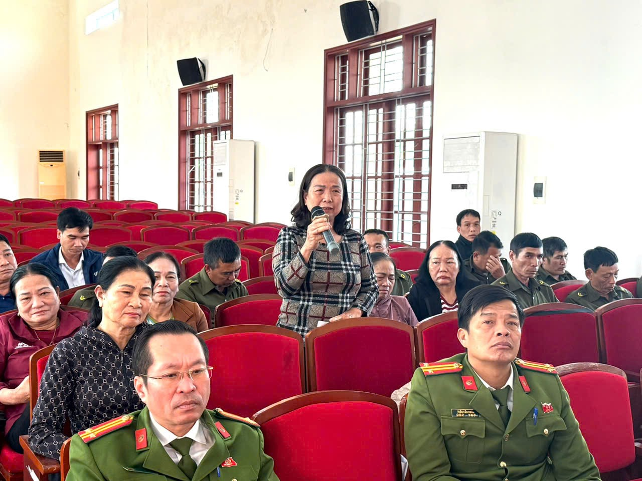 Với tinh thần dân chủ, cởi mở, hội nghị đã ghi nhận nhiều ý kiến, kiến nghị của Nhân dân tập trung vào các nội dung như: công tác quản lý cư trú, tách hộ, cấp căn cước công dân; biện pháp phòng ngừa, xử lý tình trạng thanh niên tụ tập đua xe trái phép; giải pháp xây dựng địa bàn không ma túy; ngăn chặn pháo nổ dịp Tết Nguyên đán và bảo đảm trật tự an toàn giao thông trên địa bàn.