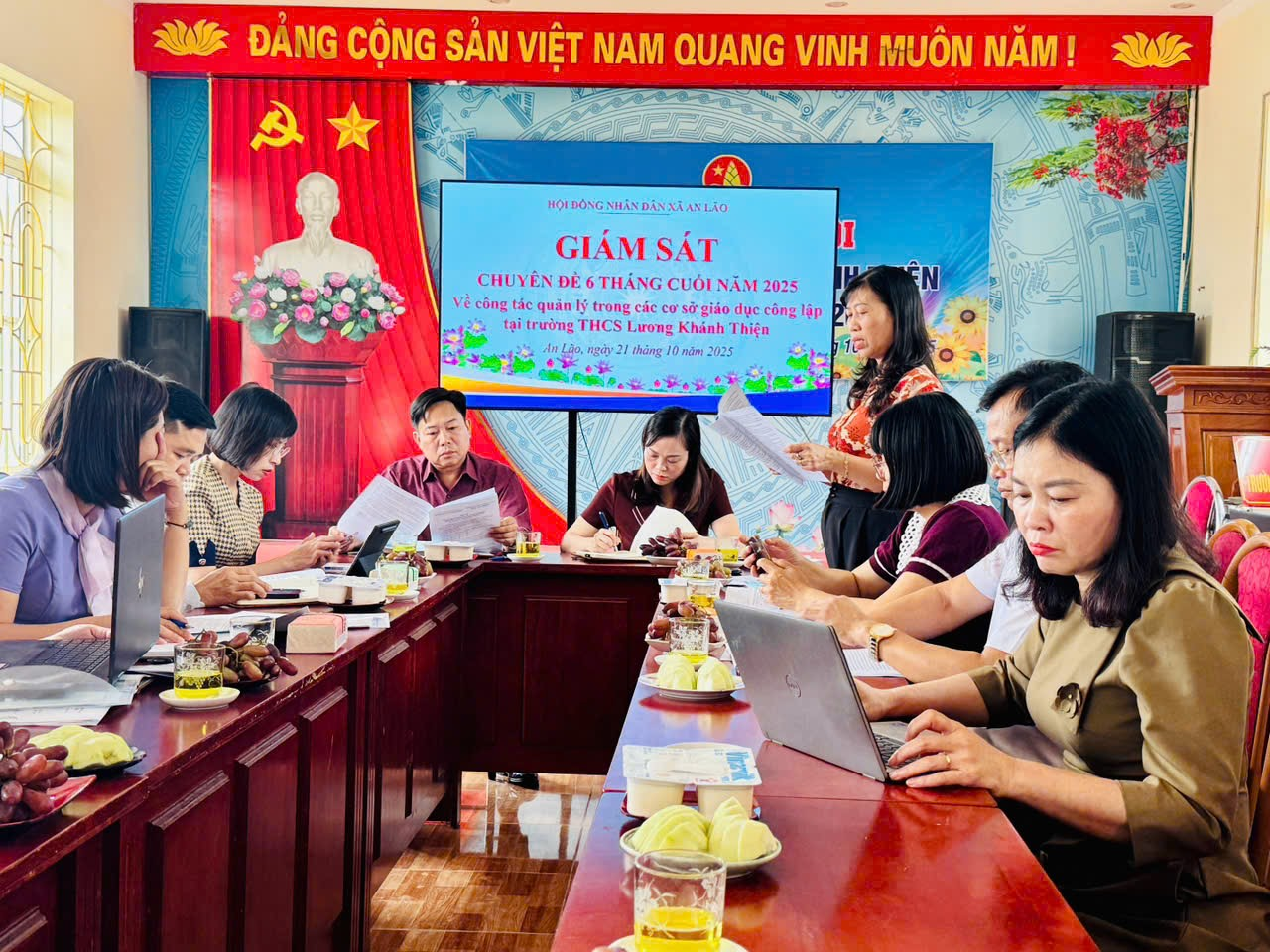 ✅ Chiều 21/10, Thường trực HĐND xã An Lão do đồng chí Bùi Thị Hưng, UVBTV, Phó Chủ tịch HĐND xã làm trường đoàn có buổi giám sát công tác quản lý, nâng cao chất lượng giáo dục tại trường THCS Lương Khánh Thiện. Cùng dự có đồng chí Đỗ Văn Sóng-UVBTV, Trưởng Ban xây dựng Đảng, Trưởng Ban kinh tế - ngân sách HĐND xã, các ban HĐND xã, văn phòng HĐND- UBND, phòng chuyên môn của xã.
