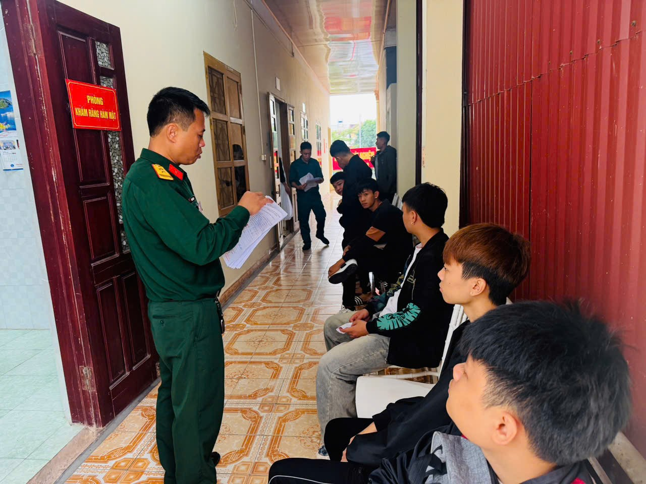 Có mặt tại khu vực khám tuyển, chúng tôi chứng kiến không khí làm việc sôi nổi, khẩn trương, nghiêm túc. Công tác đón tiếp, hướng dẫn, phân luồng được thực hiện nghiêm túc, nhanh gọn, an toàn và đúng quy trình, các vị trí khám được bố trí khoa học, thuận tiện. Các thanh niên đều có ý thức chấp hành tốt, đến đúng giờ, trang phục gọn gàng, tinh thần phấn khởi, thể hiện trách nhiệm đối với Tổ quốc. Các y bác sĩ của Hội đồng khám tuyển làm việc tận tình, khách quan, đúng chuyên môn. Mỗi điểm khám đều có cán bộ Ban chỉ huy phòng thủ khu vực 4, Ban chỉ huy quân sự xã, công an xã hướng dẫn, kiểm tra, theo dõi trong suốt quá trình khám tuyển. Thanh niên đến khám tuyển sức khỏe nghĩa vụ quân sự 2026 được khám thể lực và lâm sàng theo các chỉ tiêu: Mắt, tai mũi họng, răng hàm mặt, thần kinh, tâm thần, nội khoa, ngoại khoa, da liễu. Khám cận lâm sàng như chụp X-quang tim phổi thẳng, siêu âm bụng tổng quát, điện tim, xét nghiệm nhóm máu, sàng lọc HIV, ma túy.
