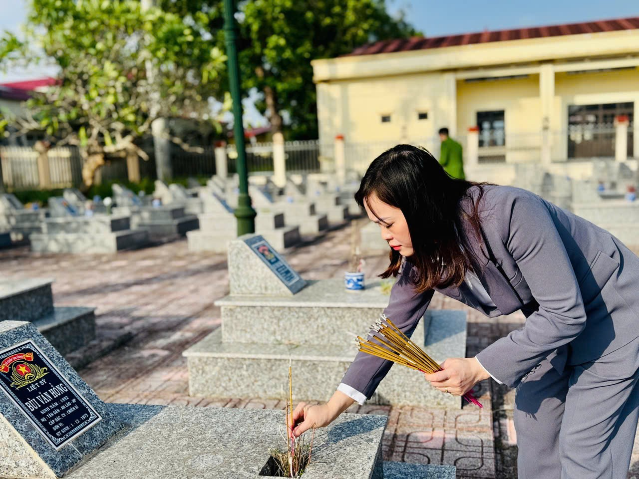 Trong không khí trang nghiêm, thành kính, các đồng chí lãnh đạo xã đã kính cẩn dâng hương, dành phút mặc niệm, bày tỏ lòng biết ơn sâu sắc đối với các Anh hùng liệt sĩ – những người con ưu tú của dân tộc đã anh dũng hy sinh vì độc lập, tự do của Tổ quốc, vì hạnh phúc của Nhân dân.